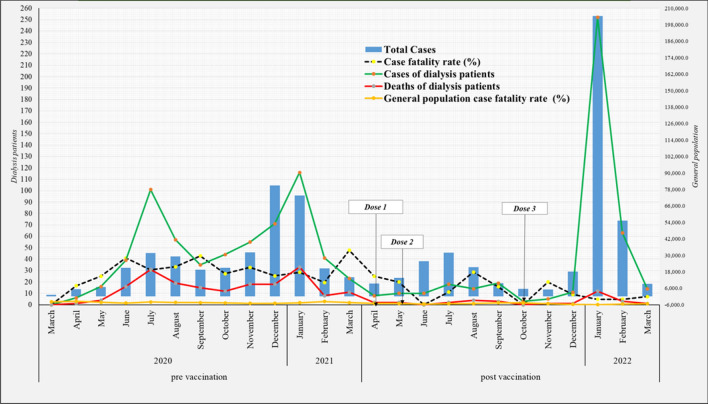 Methods: This is a prospective, multi-center cohort study of spatients aged 18 years or older and receiving in-center hemodialysis or ambulatory peritoneal dialysis in 13 centers in Panama from March 2021 to 2022. For comparison with general population, the study used an extended period of two years.
