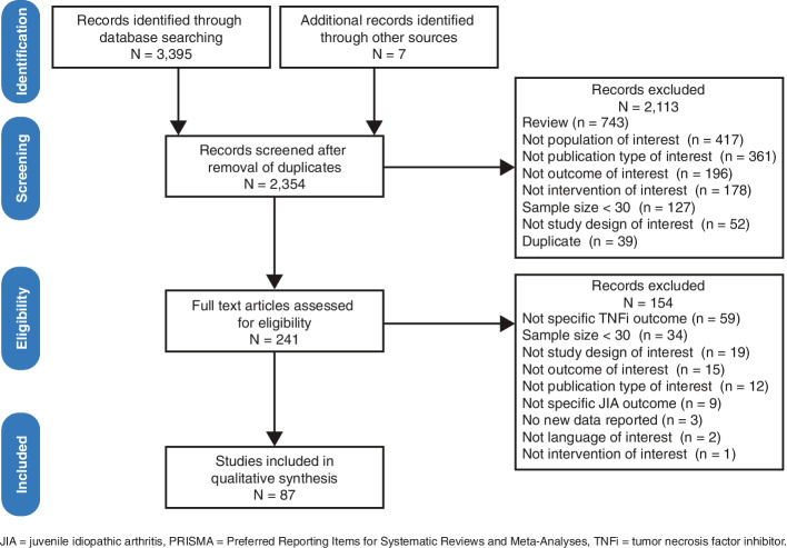 Objective: A systematic literature review was conducted to summarize efficacy and safety data from studies that evaluated tumor necrosis factor inhibitors in patients with juvenile idiopathic arthritis (JIA).