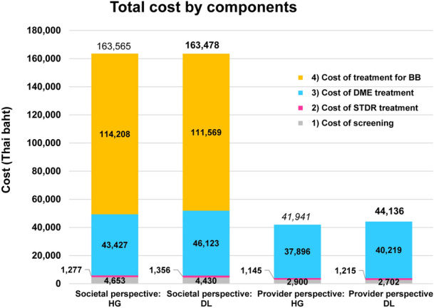 Conclusion: DR screening using DL in an MIC using Thailand as a model may result in societal cost-savings and similar health outcomes compared with HG. This study may provide an economic rationale to expand DL-based DR screening in MICs as an alternative solution for limited availability of skilled human resources for primary screening, particularly in MICs with similar prevalence of diabetes and low compliance to referrals for treatment.