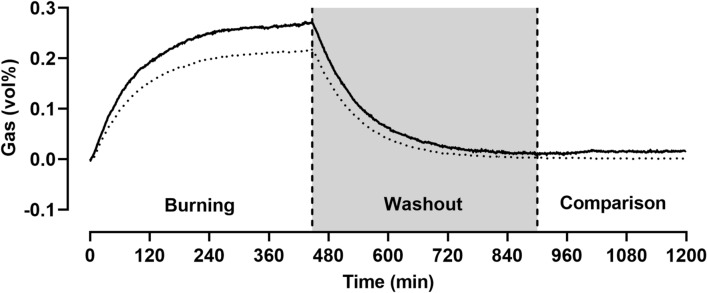 Methods: The chamber is a pull calorimeter with a total volume of 11,000 L. The majority of measurements is done with a flow rate of 120 L/min, yielding a favorable time constant of 1.53 h. The gas analysis system consists of two paramagnetic O2 sensors and two infrared CO2 sensors, one for incoming and one for outgoing air samples. O2 and CO2 sensors are calibrated simultaneously before each measurement with a 6 min calibration routine. To verify the accuracy of the whole the calorimetric system, it is validated every 2 weeks by 2 h acetone burning tests.