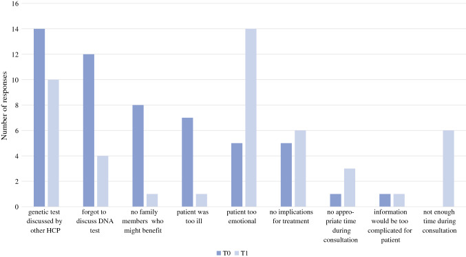 Methods: We offered an online training to healthcare professionals from 13 hospitals and implemented a mainstream genetic testing pathway in 11/13 (85%) hospitals. Questionnaires were sent before (T0) and 6 months after (T1) completing the training. Those who did not complete the training received a questionnaire to assess their motivations.
