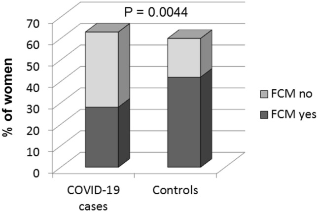Conclusion: This is the first case-control study reporting the prevalence of FCM in COVID-19 and healthy women. Overall, our data seem to suggest a role for FCM in the protection towards the SARS-CoV-2 infection with a possible positive impact on clinical outcome.
