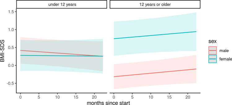 Results: Before the COVID-19 pandemic, female adolescents presented with higher mean BMI z-scores compared to male adolescents (difference: - 1.05, 95% CI - 1.86 to - 0.24, p = 0.004). No other significant differences could be observed among the other groups. During the COVID-19 pandemic, the mean BMI z-score increased in adolescents (difference: male, 0.23, 95% CI 0.18 to 0.28; female 0.21, 95% CI 0.14 to 0.29, each p < 0.001), but not in children. The BMI z-score was associated with adolescent age, and with the combination of adolescent age, female gender, and the duration of the pandemic (each p < 0.05). During the COVID-19 pandemic, the mean systolic blood pressure z-score significantly increased in female adolescents (difference: 0.47, 95% CI 0.46 to 0.49).