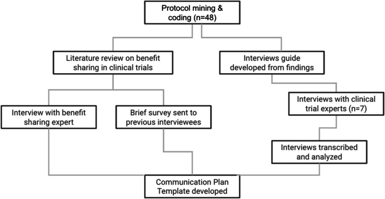 Background: Clinical trial participants have a right to be informed throughout the entire process of human subject research. As part of this pillar of research ethics, participants and other stakeholders should be made aware of research findings after a trial has been completed. Though participants have both a right, and a desire to be informed of research outcomes, studies show that they rarely receive communication about study findings. Our aim was (1) to understand what, if any, role communication plans play in current global health clinical research protocols and (2) to use our findings to develop a communication plan template tailored to clinical research carried out in low-and-middle-income countries (LMIC) while minimizing colonial assumptions. While the template was drafted in the LMIC context, the principles are universally applicable and should be considered best practices for all global health clinical trials.