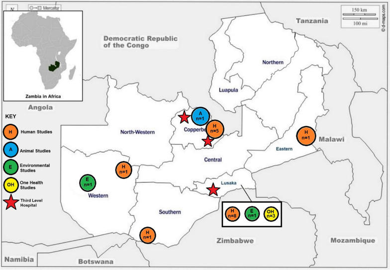 Conclusions: This review highlights three important findings. Firstly, AMR is understudied in Zambia. Secondly, the level of resistance to commonly prescribed antibiotics is significant across the human, animal, and environmental sectors. Thirdly, this review suggests that improved standardization of antimicrobial susceptibility testing in Zambia could help to better delineate AMR patterns, allow comparisons across different locations and tracking of AMR evolution over time.