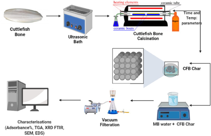 Keywords: calcination; calcium oxide (CaO); cuttlefish bone; methylene blue (dye); water remediation.