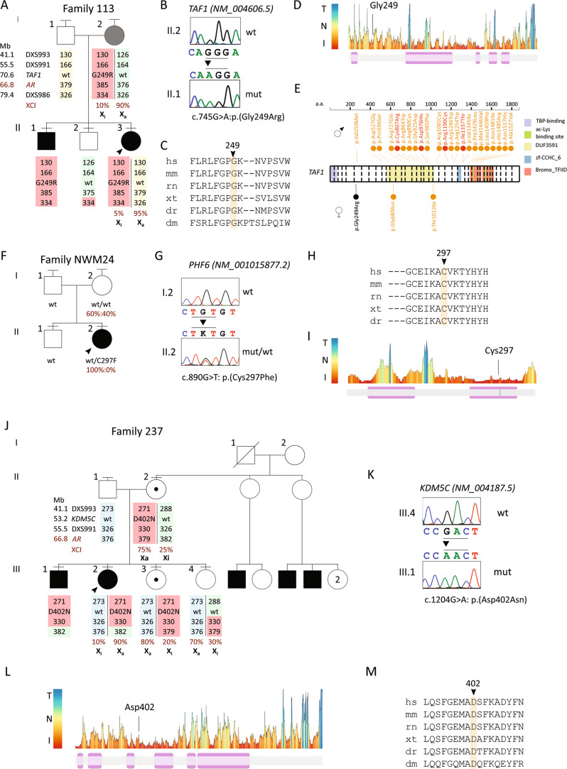 Despite major advances in genome technology and analysis, >50% of patients with a neurodevelopmental disorder (NDD) remain undiagnosed after extensive evaluation. A point in case is our clinically heterogeneous cohort of NDD patients that remained undiagnosed after FRAXA testing, chromosomal microarray analysis and trio exome sequencing (ES). In this study, we explored the frequency of non-random X chromosome inactivation (XCI) in the mothers of male patients and affected females, the rationale being that skewed XCI might be masking previously discarded genetic variants found on the X chromosome. A multiplex fluorescent PCR-based assay was used to analyse the pattern of XCI after digestion with HhaI methylation-sensitive restriction enzyme. In families with skewed XCI, we re-evaluated trio-based ES and identified pathogenic variants and a deletion on the X chromosome. Linkage analysis and RT-PCR were used to further study the inactive X chromosome allele, and Xdrop long-DNA technology was used to define chromosome deletion boundaries. We found skewed XCI (>90%) in 16/186 (8.6%) mothers of NDD males and in 12/90 (13.3%) NDD females, far beyond the expected rate of XCI in the normal population (3.6%, OR = 4.10; OR = 2.51). By re-analyzing ES and clinical data, we solved 7/28 cases (25%) with skewed XCI, identifying variants in KDM5C, PDZD4, PHF6, TAF1, OTUD5 and ZMYM3, and a deletion in ATRX. We conclude that XCI profiling is a simple assay that targets a subgroup of patients that can benefit from re-evaluation of X-linked variants, thus improving the diagnostic yield in NDD patients and identifying new X-linked disorders.
