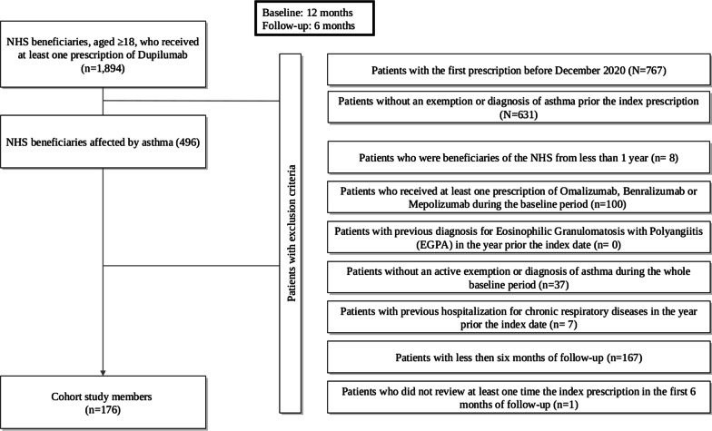 Main results: In a cohort of 176 patients, Dupilumab significantly reduced anti-asthmatic drugs use (including OCS and short-acting β2-agonists, inhaled corticosteroids (ICS)/long-acting β2-agonists and ICS alone) when comparing the "pre-intervention" to the "post-intervention" period. When considering hospital admissions, we observed a not statistically or marginally significant reduction between both periods before Dupilumab and the post-intervention period. Six-months discontinuation rate was 8%. Overall healthcare costs had a tenfold increase between the "pre-intervention" and "post-intervention" period, which was mainly led by the biologic drug cost. Conversely, expenditures connected to hospital admissions did not change.