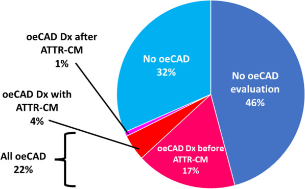 Conclusions: While oeCAD is prevalent in ATTR-CM patients, this diagnosis is frequently known at time of ATTR-CM diagnosis and characteristics are similar to patients without oeCAD.
