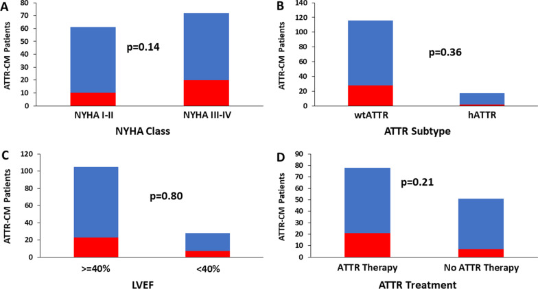 Methods and results: The prevalence and incidence of oeCAD and its association with all-cause mortality and hospitalization among 133 ATTR-CM patients with ≥ 1-year follow-up was evaluated. The mean age was 78 ± 9 years, 119 (89%) were male, 116 (87%) had wild-type and 17 (13%) had hereditary subtypes. Seventy-two (54%) patients underwent oeCAD investigations, with 30 (42%) receiving a positive diagnosis. Among patients with a positive oeCAD diagnosis, 23 (77%) were diagnosed prior to ATTR-CM diagnosis, 6 (20%) at the time of ATTR-CM diagnosis, and 1 (3%) after ATTR-CM diagnosis. Baseline characteristics between patients with and without oeCAD were similar. Among patients with oeCAD, only 2 (7%) required additional investigations, intervention or hospitalization after ATTR-CM diagnosis. After a median follow-up of 27 months there were 37 (28%) deaths in the study population, including 5 patients with oeCAD (17%). Fifty-six (42%) patients in the study population required hospitalization, including 10 patients with oeCAD (33%). There was no significant difference in the rates of death or hospitalization among ATTR-CM patients with and without oeCAD, and oeCAD was not significantly associated with either outcome by univariable regression analysis.