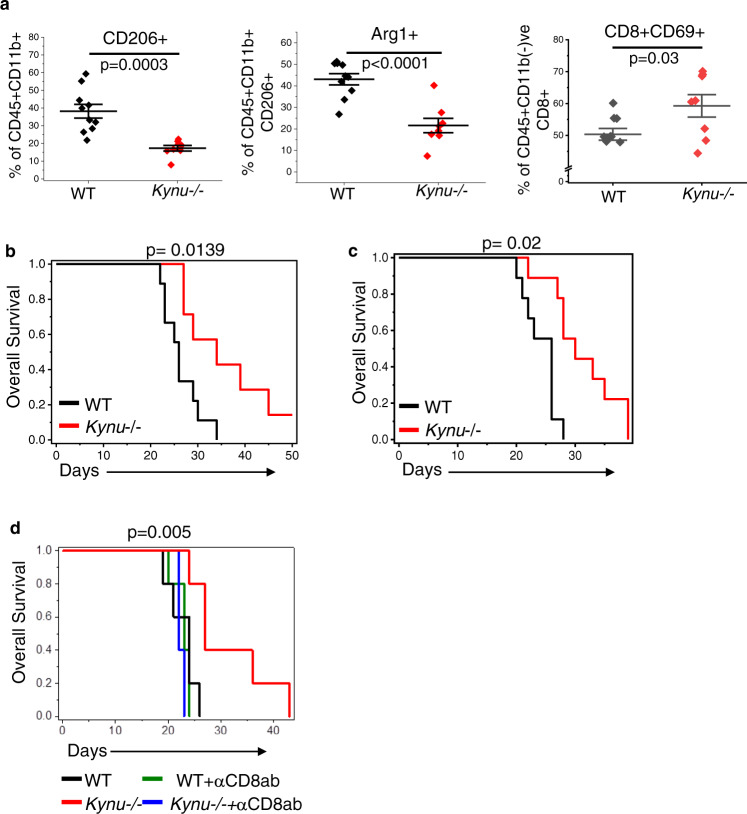 There has been considerable scientific effort dedicated to understanding the biologic consequence and therapeutic implications of aberrant tryptophan metabolism in brain tumors and neurodegenerative diseases. A majority of this work has focused on the upstream metabolism of tryptophan; however, this has resulted in limited clinical application. Using global metabolomic profiling of patient-derived brain tumors, we identify the downstream metabolism of tryptophan and accumulation of quinolinate (QA) as a metabolic node in glioblastoma and demonstrate its critical role in promoting immune tolerance. QA acts as a metabolic checkpoint in glioblastoma by inducing NMDA receptor activation and Foxo1/PPARγ signaling in macrophages, resulting in a tumor supportive phenotype. Using a genetically-engineered mouse model designed to inhibit production of QA, we identify kynureninase as a promising therapeutic target to revert the potent immune suppressive microenvironment in glioblastoma. These findings offer an opportunity to revisit the biologic consequence of this pathway as it relates to oncogenesis and neurodegenerative disease and a framework for developing immune modulatory agents to further clinical gains in these otherwise incurable diseases.