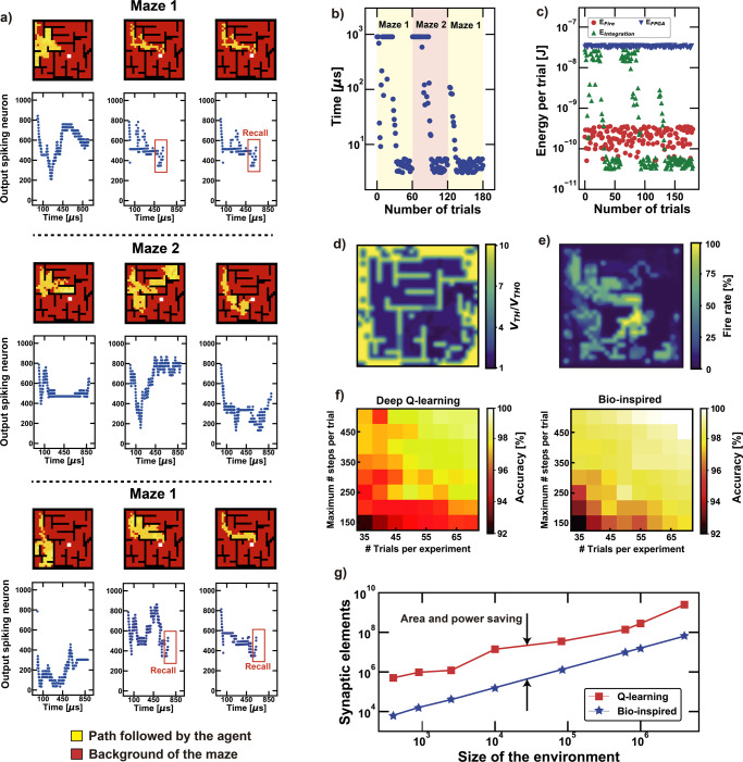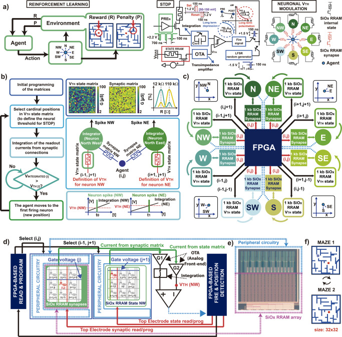 Neurobiological systems continually interact with the surrounding environment to refine their behaviour toward the best possible reward. Achieving such learning by experience is one of the main challenges of artificial intelligence, but currently it is hindered by the lack of hardware capable of plastic adaptation. Here, we propose a bio-inspired recurrent neural network, mastered by a digital system on chip with resistive-switching synaptic arrays of memory devices, which exploits homeostatic Hebbian learning for improved efficiency. All the results are discussed experimentally and theoretically, proposing a conceptual framework for benchmarking the main outcomes in terms of accuracy and resilience. To test the proposed architecture for reinforcement learning tasks, we study the autonomous exploration of continually evolving environments and verify the results for the Mars rover navigation. We also show that, compared to conventional deep learning techniques, our in-memory hardware has the potential to achieve a significant boost in speed and power-saving.