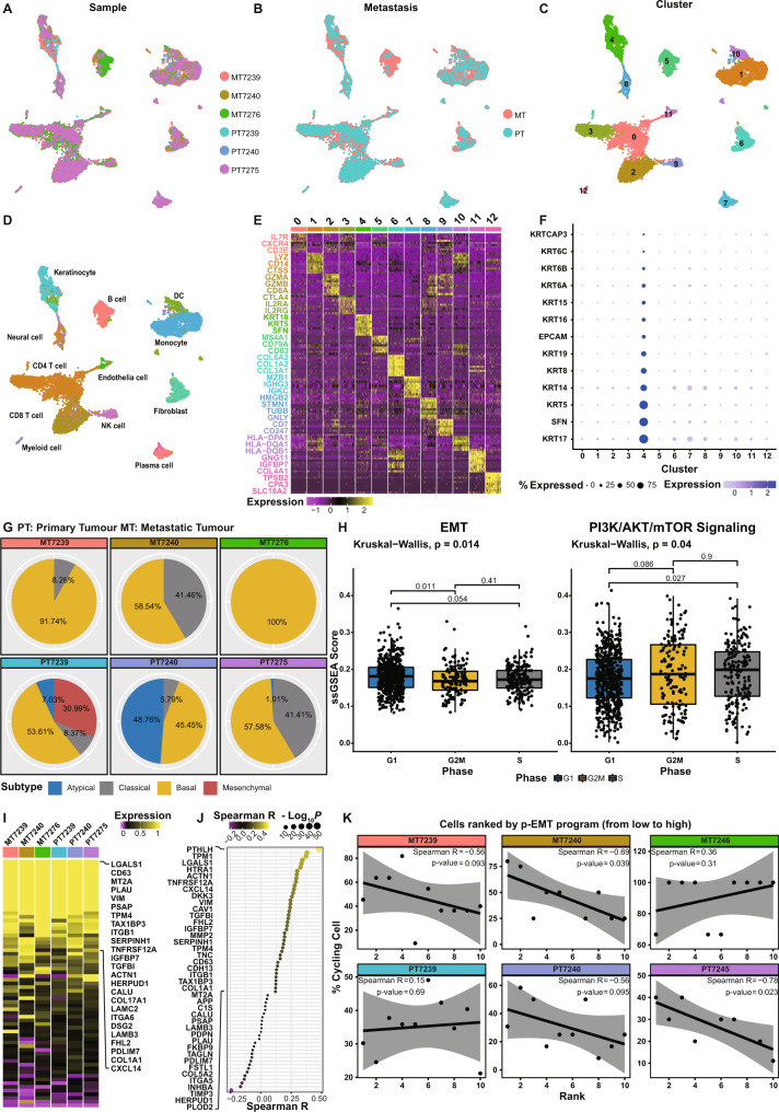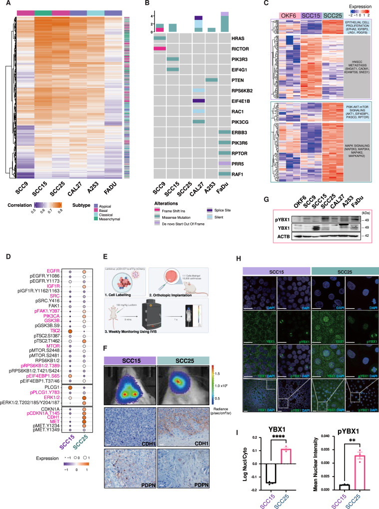 In heterogeneous head and neck cancer (HNC), subtype-specific treatment regimens are currently missing. An integrated analysis of patient HNC subtypes using single-cell sequencing and proteome profiles reveals an epithelial-mesenchymal transition (EMT) signature within the epithelial cancer-cell population. The EMT signature coincides with PI3K/mTOR inactivation in the mesenchymal subtype. Conversely, the signature is suppressed in epithelial cells of the basal subtype which exhibits hyperactive PI3K/mTOR signalling. We further identify YBX1 phosphorylation, downstream of the PI3K/mTOR pathway, restraining basal-like cancer cell proliferation. In contrast, YBX1 acts as a safeguard against the proliferation-to-invasion switch in mesenchymal-like epithelial cancer cells, and its loss accentuates partial-EMT and in vivo invasion. Interestingly, phospho-YBX1 that is mutually exclusive to partial-EMT, emerges as a prognostic marker for overall patient outcomes. These findings create a unique opportunity to sensitise mesenchymal cancer cells to PI3K/mTOR inhibitors by shifting them towards a basal-like subtype as a promising therapeutic approach against HNC.