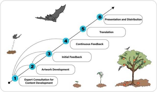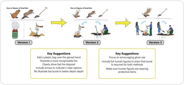 As part of a public health behavior change and communication strategy related to the identification of a novel ebolavirus in bats in Sierra Leone in 2016, a consortium of experts launched an effort to create a widely accessible resource for community awareness and education on reducing disease risk. The resulting picture book, Living Safely With Bats, includes technical content developed by a consortium of experts in public health, animal health, conservation, bats, and disease ecology from 30 countries. The book has now been adapted, translated, and used in more than 20 countries in Africa and Asia. We review the processes used to integrate feedback from local stakeholders and multidisciplinary experts. We also provide recommendations for One Health and other practitioners who choose to pursue the development and evaluation of this or similar zoonotic disease risk mitigation tools.