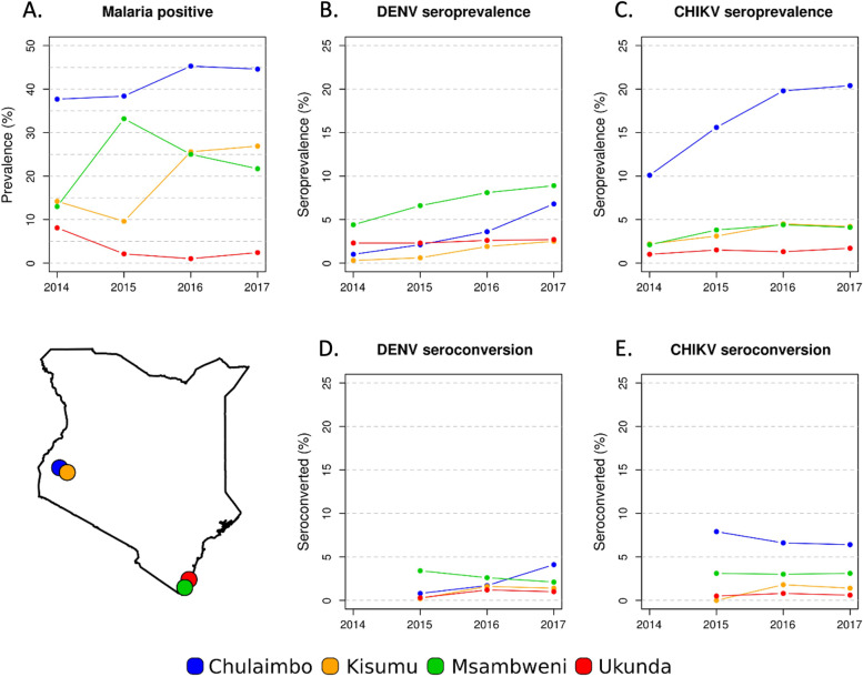 Spatiotemporal overlapping of dengue, chikungunya, and malaria infections in children in Kenya