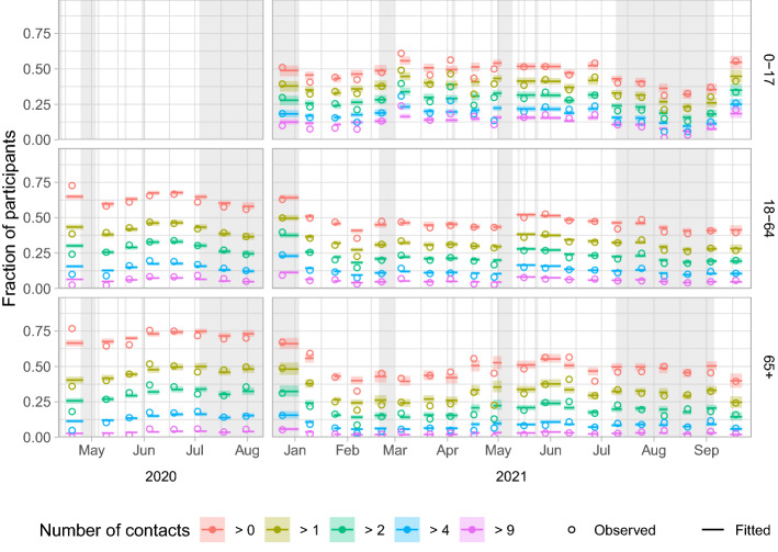 The COVID-19 pandemic was in 2020 and 2021 for a large part mitigated by reducing contacts in the general population. To monitor how these contacts changed over the course of the pandemic in the Netherlands, a longitudinal survey was conducted where participants reported on their at-risk contacts every two weeks, as part of the European CoMix survey. The survey included 1659 participants from April to August 2020 and 2514 participants from December 2020 to September 2021. We categorized the number of unique contacted persons excluding household members, reported per participant per day into six activity levels, defined as 0, 1, 2, 3-4, 5-9 and 10 or more reported contacts. After correcting for age, vaccination status, risk status for severe outcome of infection, and frequency of participation, activity levels increased over time, coinciding with relaxation of COVID-19 control measures.