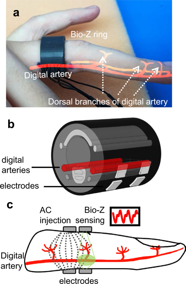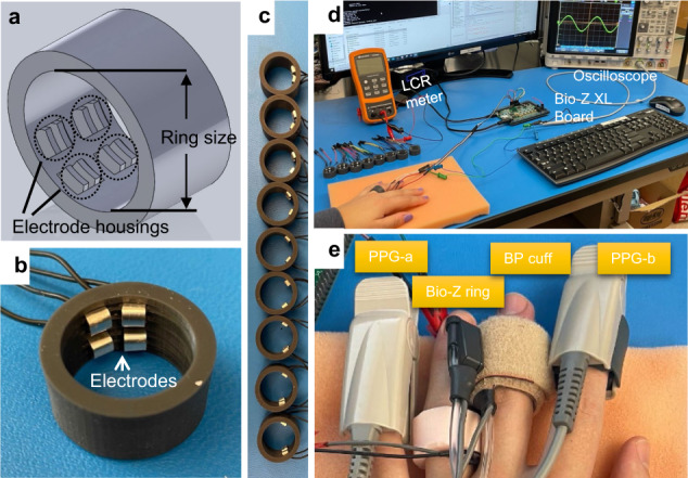 Smart rings provide unique opportunities for continuous physiological measurement. They are easy to wear, provide little burden in comparison to other smart wearables, are suitable for nocturnal settings, and can be sized to provide ideal contact between the sensors and the skin at all times. Continuous measuring of blood pressure (BP) provides essential diagnostic and prognostic value for cardiovascular health management. However, conventional ambulatory BP measurement devices operate using an inflating cuff that is bulky, intrusive, and impractical for frequent or continuous measurements. We introduce ring-shaped bioimpedance sensors leveraging the deep tissue sensing ability of bioimpedance while introducing no sensitivity to skin tones, unlike optical modalities. We integrate unique human finger finite element model with exhaustive experimental data from participants and derive optimum design parameters for electrode placement and sizes that yields highest sensitivity to arterial volumetric changes, with no discrimination against varying skin tones. BP is constructed using machine learning algorithms. The ring sensors are used to estimate arterial BP showing peak correlations of 0.81, and low error (systolic BP: 0.11 ± 5.27 mmHg, diastolic BP: 0.11 ± 3.87 mmHg) for >2000 data points and wide BP ranges (systolic: 89-213 mmHg and diastolic: 42-122 mmHg), highlighting the significant potential use of bioimpedance ring for accurate and continuous estimation of BP.