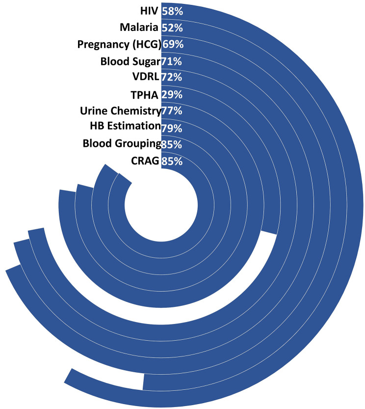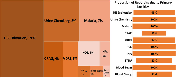 Methods: Routine facility-level data on RDT administration were sourced from the Kenya health information system for the years 2018-2020. Data on diagnostic capacity (RDT availability) and service provision (screening, diagnosis, and treatment) were obtained from a national health facility assessment conducted in 2018. The two sources were linked and compared obtaining information on 10 RDTs from both sources. The study then assessed reporting in the routine system among facilities with (i) diagnostic capacity only, (ii) both confirmed diagnostic capacity and service provision and (iii) without diagnostic capacity. Analyses were conducted nationally, disaggregated by RDT, facility level and ownership.