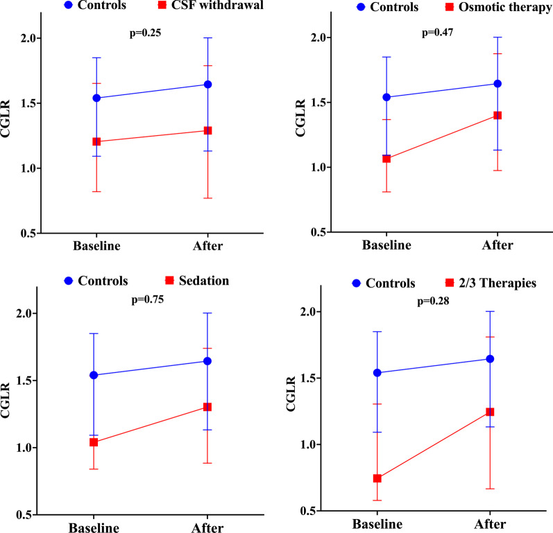 Conclusions: In this study, CGLR significantly changed over time, regardless of the study group. However, these effects were more significant in those patients receiving interventions to reduce ICP.