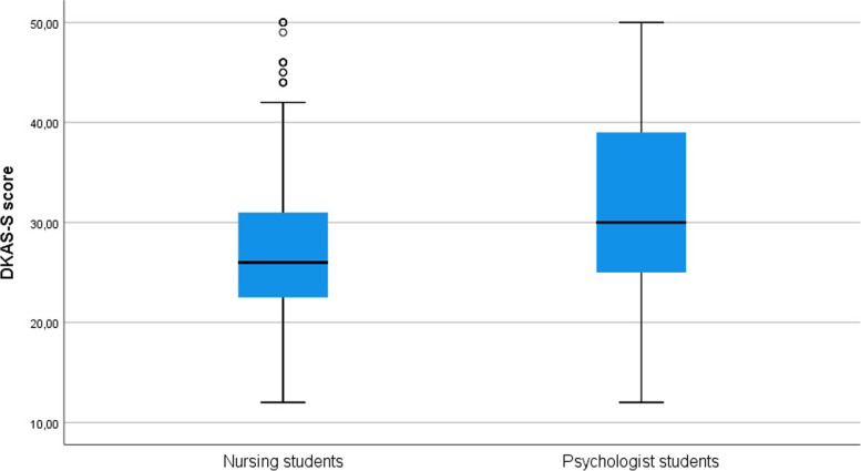 Methods: We performed a cross-sectional study to assess the validity, reliability and feasibility of the DKAS-S by comparing two different cohorts of health students (nursing and psychologists).