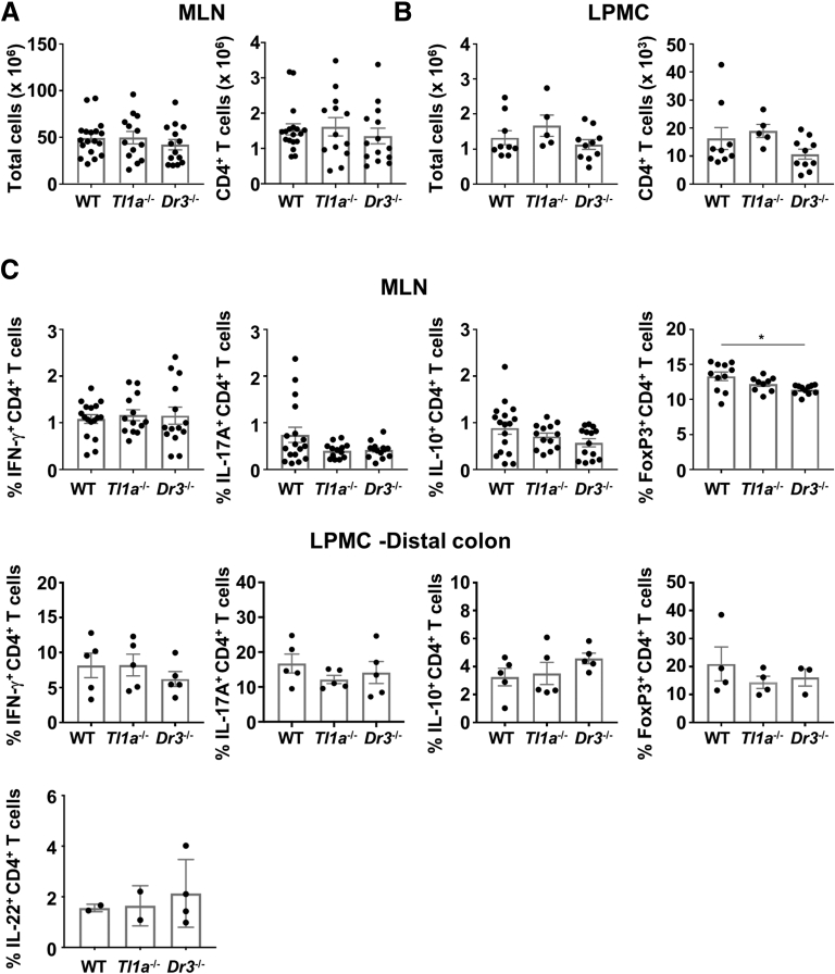Results: Dr3-/- mice developed more severe colonic inflammation than wild-type mice in DSS-induced colitis with significantly impaired IEC regeneration. Homeostatic proliferation of IECs was increased in Dr3-/- mice, but blunted during regeneration. Cellular localization and expression of the tight junction proteins Claudin-1 and zonula occludens-1 were altered, leading to increased homeostatic intestinal permeability. Dr3ΔIEC mice recapitulated the phenotype observed in Dr3-/- mice with increased intestinal permeability and IEC proliferation under homeostatic conditions and impaired tissue repair and increased bacterial translocation during DSS-induced colitis. Impaired regenerative potential and altered zonula occludens-1 localization also were observed in Dr3ΔIEC enteroids.