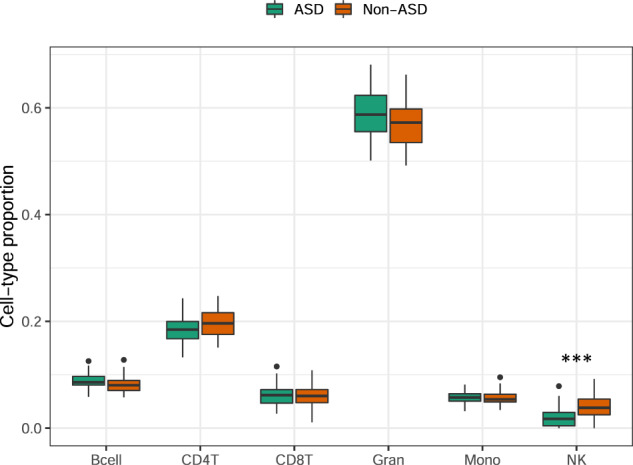 While the genetics of autism spectrum disorders (ASD) has been intensively studied, resulting in the identification of over 100 putative risk genes, the epigenetics of ASD has received less attention, and results have been inconsistent across studies. We aimed to investigate the contribution of DNA methylation (DNAm) to the risk of ASD and identify candidate biomarkers arising from the interaction of epigenetic mechanisms with genotype, gene expression, and cellular proportions. We performed DNAm differential analysis using whole blood samples from 75 discordant sibling pairs of the Italian Autism Network collection and estimated their cellular composition. We studied the correlation between DNAm and gene expression accounting for the potential effects of different genotypes on DNAm. We showed that the proportion of NK cells was significantly reduced in ASD siblings suggesting an imbalance in their immune system. We identified differentially methylated regions (DMRs) involved in neurogenesis and synaptic organization. Among candidate loci for ASD, we detected a DMR mapping to CLEC11A (neighboring SHANK1) where DNAm and gene expression were significantly and negatively correlated, independently from genotype effects. As reported in previous studies, we confirmed the involvement of immune functions in the pathophysiology of ASD. Notwithstanding the complexity of the disorder, suitable biomarkers such as CLEC11A and its neighbor SHANK1 can be discovered using integrative analyses even with peripheral tissues.