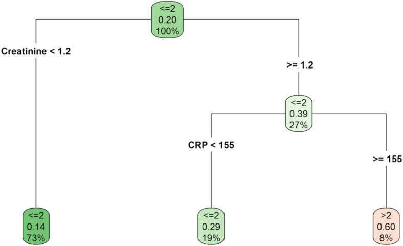 A full understanding of the characteristics of Covid-19 patients with a better chance of experiencing poor vital outcomes is critical for implementing accurate and precise treatments. In this paper, two different advanced data-driven statistical approaches along with standard statistical methods have been implemented to identify groups of patients most at-risk for death or severity of respiratory distress. First, the tree-based analysis allowed to identify profiles of patients with different risk of in-hospital death (by Survival Tree-ST analysis) and severity of respiratory distress (by Classification and Regression Tree-CART analysis), and to unravel the role on risk stratification of highly dependent covariates (i.e., demographic characteristics, admission values and comorbidities). The ST analysis identified as the most at-risk group for in-hospital death the patients with age > 65 years, creatinine [Formula: see text] 1.2 mg/dL, CRP [Formula: see text] 25 mg/L and anti-hypertensive treatment. Based on the CART analysis, the subgroups most at-risk of severity of respiratory distress were defined by patients with creatinine level [Formula: see text] 1.2 mg/dL. Furthermore, to investigate the multivariate dependence structure among the demographic characteristics, the admission values, the comorbidities and the severity of respiratory distress, the Bayesian Network analysis was applied. This analysis confirmed the influence of creatinine and CRP on the severity of respiratory distress.
