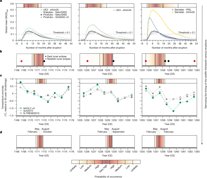 Lunar eclipses illuminate timing and climate impact of medieval volcanism