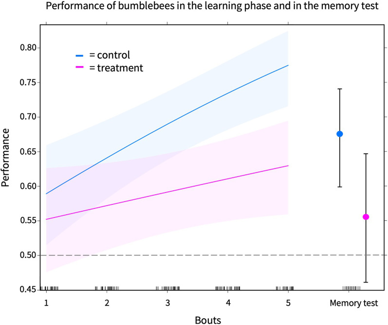 Results: The lower exposure level of the thiacloprid-based pesticide impaired the bees' learning performance but not long-term memory compared to the untreated controls. The higher exposure level caused severe acute symptoms, due to which we were not able to test the learning and memory.