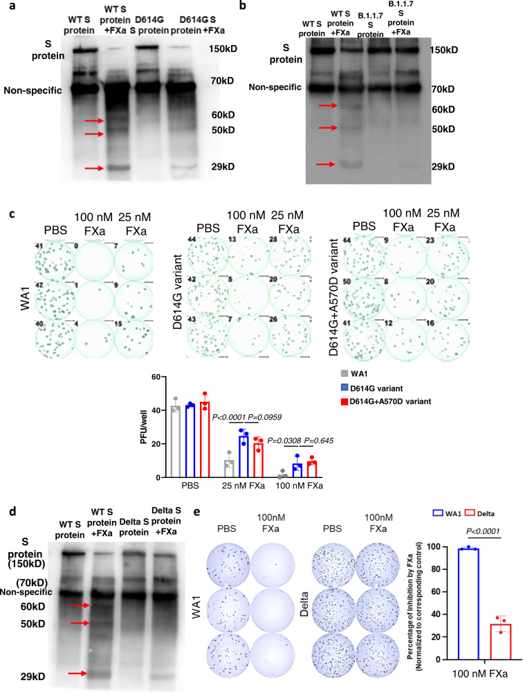 Factor Xa cleaves SARS-CoV-2 spike protein to block viral entry and infection