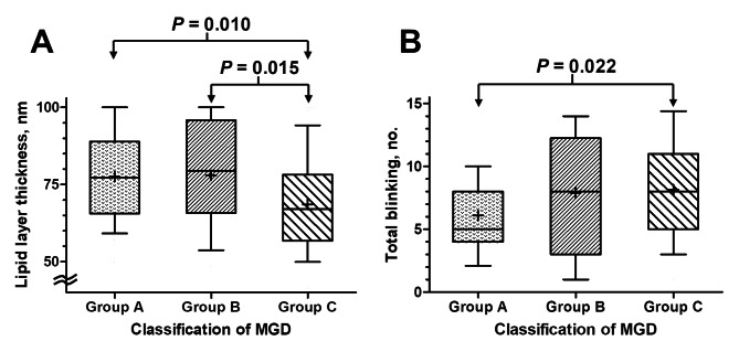 Conclusions: Asymptomatic MGD, symptomatic MGD, and MGD coexisting with DED share similar characteristics, including meibum secretion and morphology, but MGD patients coexisting with DED exhibited significantly reduced LLT.