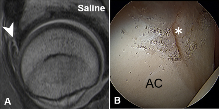 Conclusion: Diagnostic accuracy and image quality of Saline-MRA and GBCA-MRA is high in assessing chondrolabral lesions underlining the potential role of non-gadolinium-based hip MRA.