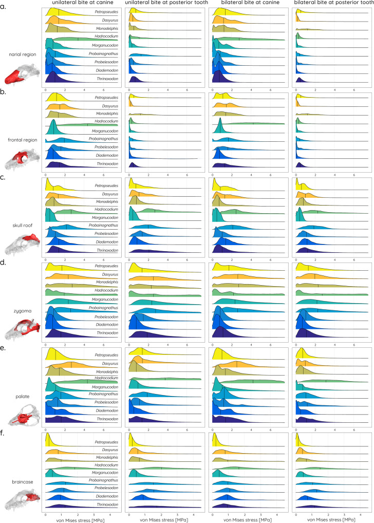 Skeletal simplification occurred in multiple vertebrate clades over the last 500 million years, including the evolution from premammalian cynodonts to mammals. This transition is characterised by the loss and reduction of cranial bones, the emergence of a novel jaw joint, and the rearrangement of the jaw musculature. These modifications have long been hypothesised to increase skull strength and efficiency during feeding. Here, we combine digital reconstruction and biomechanical modelling to show that there is no evidence for an increase in cranial strength and biomechanical performance. Our analyses demonstrate the selective functional reorganisation of the cranial skeleton, leading to reduced stresses in the braincase and the skull roof but increased stresses in the zygomatic region through this transition. This cranial functional reorganisation, reduction in mechanical advantage, and overall miniaturisation in body size are linked with a dietary specialisation to insectivory, permitting the subsequent morphological and ecological diversification of the mammalian lineage.
