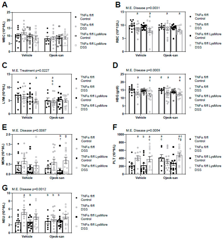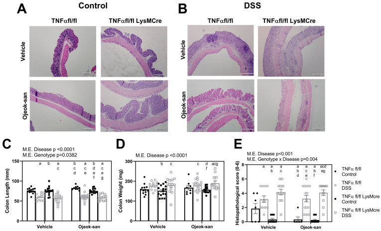 (1) Background: Gastrointestinal pain and fatigue are the most reported concerns of patients with inflammatory bowel disease (IBD). Commonly prescribed drugs focus on decreasing excessive inflammation. However, up to 20% of IBD patients in an "inactive" state experience abdominal pain. The medicinal herb Ojeok-san (OJS) has shown promise in the amelioration of visceral pain. However, no research on OJS has been conducted in preclinical models of IBD. The mechanism by which OJS promotes analgesia is still elusive, and it is unclear if OJS possesses addictive properties. (2) Aims: In this study, we examined the potential of OJS to promote analgesic effects and rewarding behavior. Additionally, we investigated if tumor necrosis factor alpha (TNFα) from macrophages is a primary culprit of IBD-induced nociception. (3) Methods: Multiple animal models of IBD were used to determine if OJS can reduce visceral nociception. TNFα-macrophage deficient mice were used to investigate the mechanism of action by which OJS reduces nociceptive behavior. Mechanical sensitivity and operant conditioning tests were used to determine the analgesic and rewarding effects of OJS. Body weight, colon length/weight, blood in stool, colonic inflammation, and complete blood count were assessed to determine disease progression. (4) Results: OJS reduced the evoked mechanical nociception in the dextran sulphate sodium model of colitis and IL-10 knockout (KO) mice and delayed aversion to colorectal distension in C57BL/6 mice. No rewarding behavior was observed in OJS-treated IL-10 KO and mdr1a KO mice. The analgesic effects of OJS are independent of macrophage TNFα levels and IBD progression. (5) Conclusions: OJS ameliorated elicited mechanical and visceral nociception without producing rewarding effects. The analgesic effects of OJS are not mediated by macrophage TNFα.