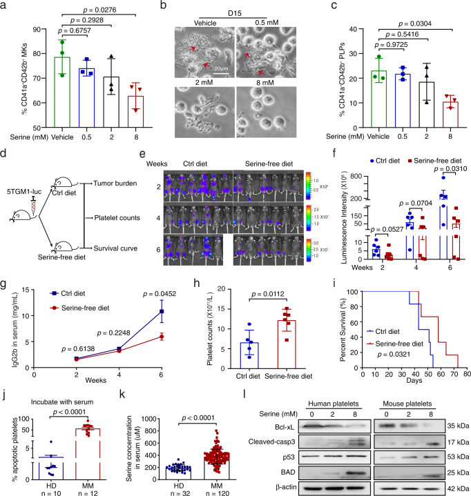Excessive serine from the bone marrow microenvironment impairs megakaryopoiesis and thrombopoiesis in Multiple Myeloma