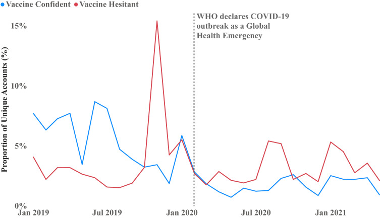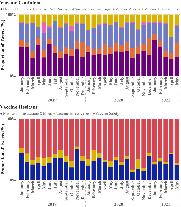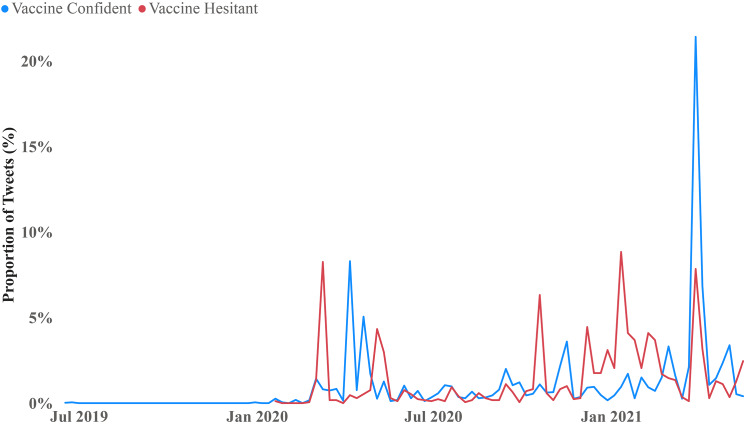 Results: Most of the tweets in the vaccine hesitant network were negative in tone (54.9%) and focused on safety concerns surrounding the HPV vaccine while most of the tweets in the vaccine confident network were neutral (51.6%) and emphasized the health benefits of vaccination. Growth in negative sentiment among the vaccine hesitant network corresponded with legislative efforts in the State of New York to mandate HPV vaccination for public school students in 2019 and the WHO declaration of COVID-19 as a Global Health Emergency in 2020. In the vaccine confident network, the number of tweets concerning the HPV vaccine decreased during the COVID-19 pandemic but in both vaccine hesitant and confident networks, the sentiments, and themes of tweets about HPV vaccine were unchanged.