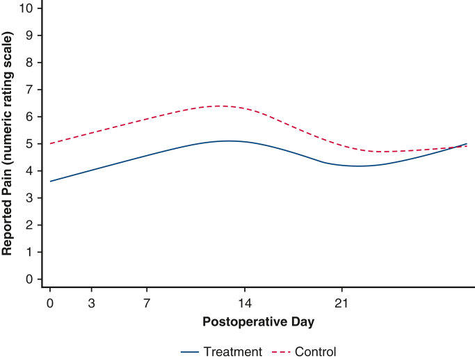 Results: Of the 102 patients transplanted, 45 received intraoperative cryoablation (intervention group) and 57 received the standard of care, which did not include intercostal or serratus blocks or immediate postoperative epidural placement (control group). The intervention group had significantly lower median and maximum postoperative pain scores at days 3 and 7 and significantly lower oral opioid use at days 3, 7, and 14 compared with the control group. Chronic opioid use at 3 and 6 months' posttransplant was lower in the intervention group. Differences in perioperative outcomes, including length of mechanical ventilation, sedation and agitation levels, and hospital stay, were not clinically meaningful. Survival at 30 days and 1 year was superior in the intervention compared with the control group.
