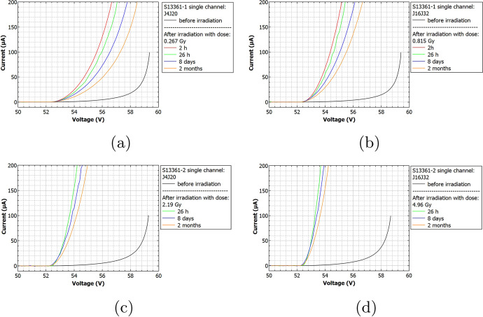 POLAR-2 is a space-borne polarimeter, built to investigate the polarization of Gamma-Ray Bursts and help elucidate their mechanisms. The instrument is targeted for launch in 2024 or 2025 aboard the China Space Station and is being developed by a collaboration between institutes from Switzerland, Germany, Poland and China. The instrument will orbit at altitudes between 340km and 450km with an inclination of and will be subjected to background radiation from cosmic rays and solar events. It is therefore pertinent to better understand the performance of sensitive devices under space-like conditions. In this paper we focus on the radiation damage of the silicon photomultiplier arrays S13361-6075NE-04 and S14161-6050HS-04 from Hamamatsu. The S13361 are irradiated with 58MeV protons at several doses up to 4.96Gy, whereas the newer series S14161 are irradiated at doses of 0.254Gy and 2.31Gy. Their respective performance degradation due to radiation damage are discussed. The equivalent exposure time in space for silicon photomultipliers inside POLAR-2 with a dose of 4.96Gy is 62.9years (or 1.78years when disregarding the shielding from the instrument). Primary characteristics of the I-V curves are an increase in the dark current and dark counts, mostly through cross-talk events. Annealing processes at were observed but not studied in further detail. Biasing channels while being irradiated have not resulted in any significant impact. Activation analyses showed a dominant contribution of particles around 511 keV. These resulted primarily from copper and carbon, mostly with decay times shorter than the orbital period.