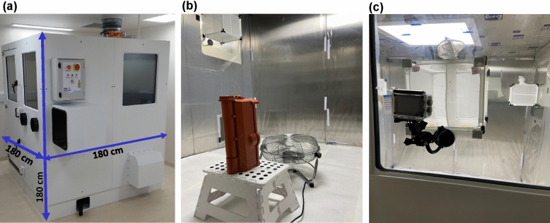 Developing robust and standardised approaches for testing mosquito populations against insecticides is vital for understanding the effectiveness of new active ingredients or formulations. Methods for testing mosquito susceptibility against contact insecticides or products, such as those delivered through public health programmes, are well-established and standardised. Nevertheless, approaches for testing volatile or aerosolized insecticides used in household products can be challenging to implement efficiently. We adapted WHO guidelines for household insecticides to develop a standardised and higher-throughput methodology for testing aerosolized products in a Peet Grady test chamber (PG-chamber) using caged mosquitoes and an efficient decontamination method. The new approach was validated using insecticide resistant and susceptible Aedes and Anopheles mosquito colonies. An added feature is the inclusion of cage-facing cameras to allow real-time quantification of knockdown following insecticide exposure. The wipe-based decontamination method was highly effective for removing pyrethroids' aerosolized oil-based residues from chamber surfaces, with < 2% mortality recorded for susceptible mosquitoes tested directly on the surfaces. There was no spatial heterogeneity for knockdown or mortality of caged mosquitoes within the PG chamber. The dual-cage approach we implement yields eight-times the throughput compared to a free-flight protocol, allows simultaneous testing of different mosquito strains and effectively discriminates susceptible and resistant mosquito colonies tested side-by-side.