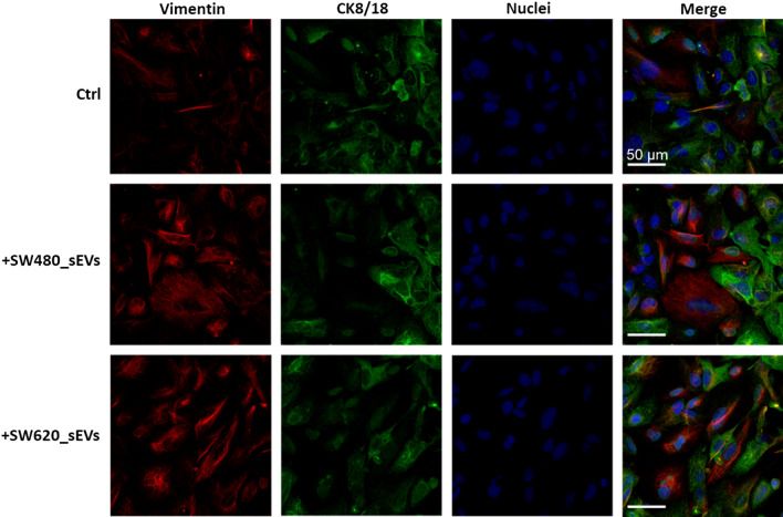 Methods: sEVs isolated from SW480 and SW620 CRC cells and from clinical samples of CRC patients and healthy subjects were used to treat human healthy hepatocytes (THLE-2 cells). RT-qPCR, Western blot and confocal microscopy were applied to investigate the effects of this treatment.