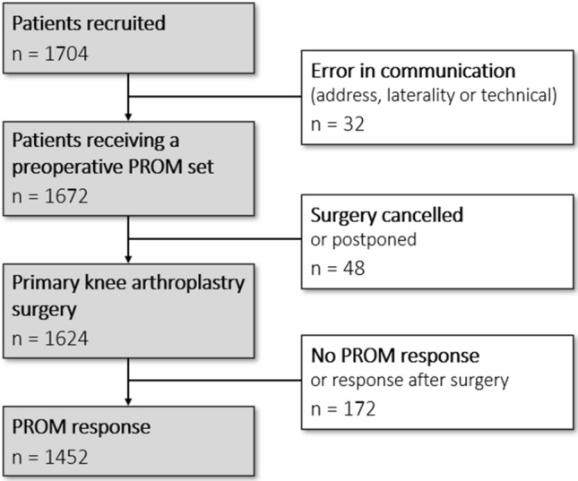 Methods: A prospective observational cohort study included patients scheduled Sep 2016 Dec 2017 for primary knee arthroplasty (total, medial/lateral unicompartmental or patellofemoral) at three high-volume hospitals, representing regions with 2-year cumulative revision rates of 1, 2 and 5%, respectively. Hospitals were compared with respects to patient demographics, preoperative patient-reported outcome measures, motivations for surgery, implant selection, radiological osteoarthritis and the regional incidence of primary surgery. Statistical tests (parametric and non-parametric) comprised all three hospitals.