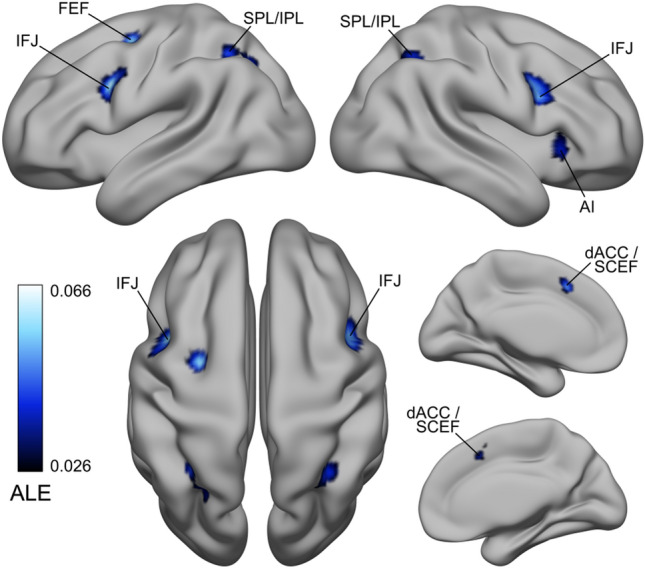 Keywords: Activation likelihood estimation; Cognitive control; Meta-analytic connectivity modeling; Prefrontal cortex; Saccades; Working memory.