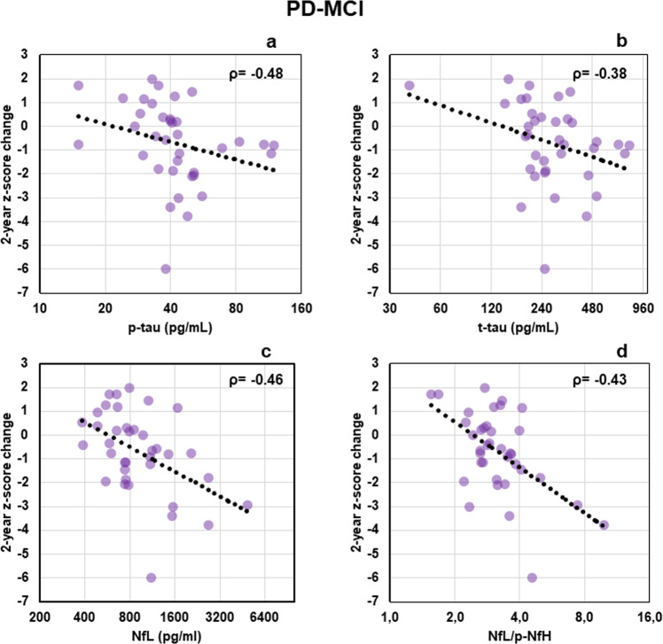 CSF neurochemical profile and cognitive changes in Parkinson's disease with mild cognitive impairment