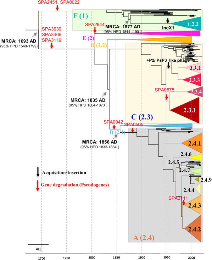 Genomic analysis unveils genome degradation events and gene flux in the emergence and persistence of S. Paratyphi A lineages