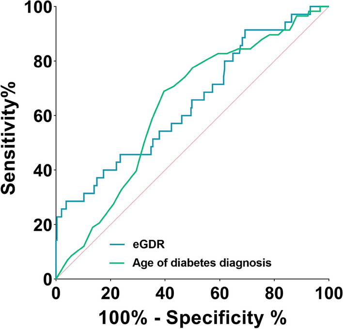Latent autoimmune diabetes in adults (LADA) has clinical and metabolic features of type 1 and type 2 diabetes. LADA does not have specific features for its diagnosis apart from autoantibody detection; however, these tests are not affordable in clinical settings. In this cross-sectional study, we analyzed clinical criteria, metabolic control, pharmacological treatment, and diabetic complications in two groups of patients with diabetes -LADA and T2D- in order to identify specific characteristic of these clinical entities. Finally, we evaluated if the estimated glucose disposal rate (eGDR) and age at diagnosis of diabetes could be used as a diagnostic criterion for LADA. Demographic, biochemical, clinical and treatment were measured in 377 individuals with diabetes. The diagnostics of LADA were determined using Glutamic acid decarboxylase autoantibodies levels. Chi-square test or t-Student test were used to establish differences between groups. To identify factors associated with LADA, a logistic regression analysis was used. Finally, a ROC curve was plotted to assess the possible variables as diagnostic criteria for LADA. The 377 patients with diabetes were separated into 59 patients with LADA and 318 patients with T2D. Patients with LADA showed lower fasting glucose values, fewer diabetic complications, younger age at diagnosis of diabetes, higher insulin use, and higher eGDR in comparison to patients with T2D. Both groups had a mean BMI classified as overweight. The ROC evaluated the sensitivity and specificity, this analysis indicated that an age younger than 40.5 years and an eGDR value higher than 9.75 mg/kg/min correlated better with LADA. These parameters could be useful to identify patients suspected to have LADA at the first level of medical care in the population of southeastern Mexico and refer them to a second level of care.