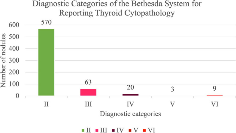Methods: Retrospective study of 665 thyroid nodules from 598 patients who underwent ultrasound and fine-needle aspiration at a tertiary-care institution between January 1st of 2016 and July 31st of 2019. Based on their sonographic features they were classified according to the EU-TIRADS and ACR TI-RADS classification and then their cytological results were obtained. Differences in FNA indications according to these two classifications were analysed. In patients who underwent surgical removal of the nodules, the final pathological diagnosis was obtained.