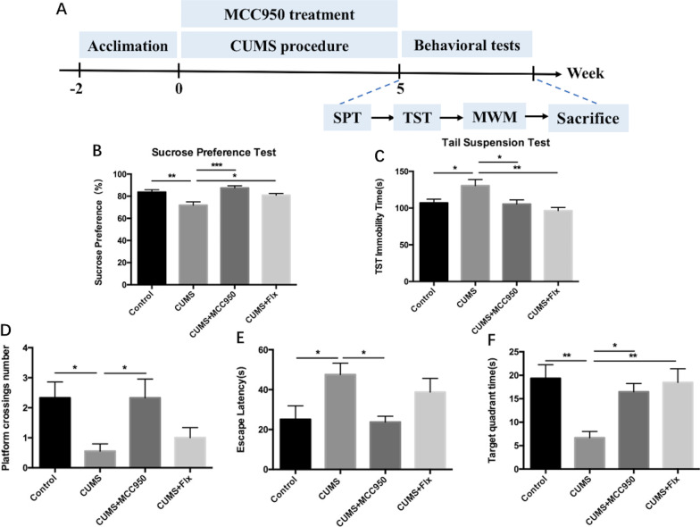 Conclusions: Inhibition of NLRP3 inflammasome effectively alleviated CUMS-induced depressive-like behaviors and cognitive decline in mice, and inhibited the activation of AD physiological indicators.