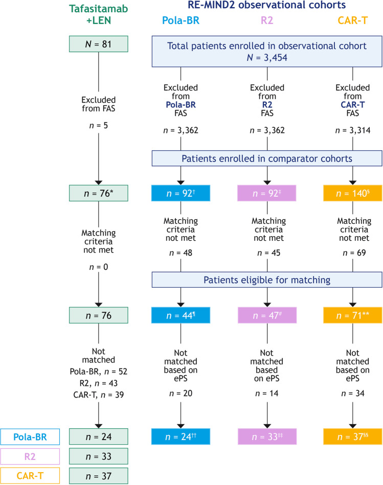RE-MIND2: comparative effectiveness of tafasitamab plus lenalidomide versus polatuzumab vedotin/bendamustine/rituximab (pola-BR), CAR-T therapies, and lenalidomide/rituximab (R2) based on real-world data in patients with relapsed/refractory diffuse large B-cell lymphoma