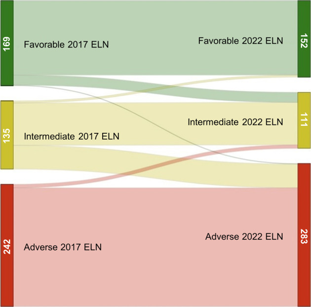 Comparison of the 2022 and 2017 European LeukemiaNet risk classifications in a real-life cohort of the PETHEMA group