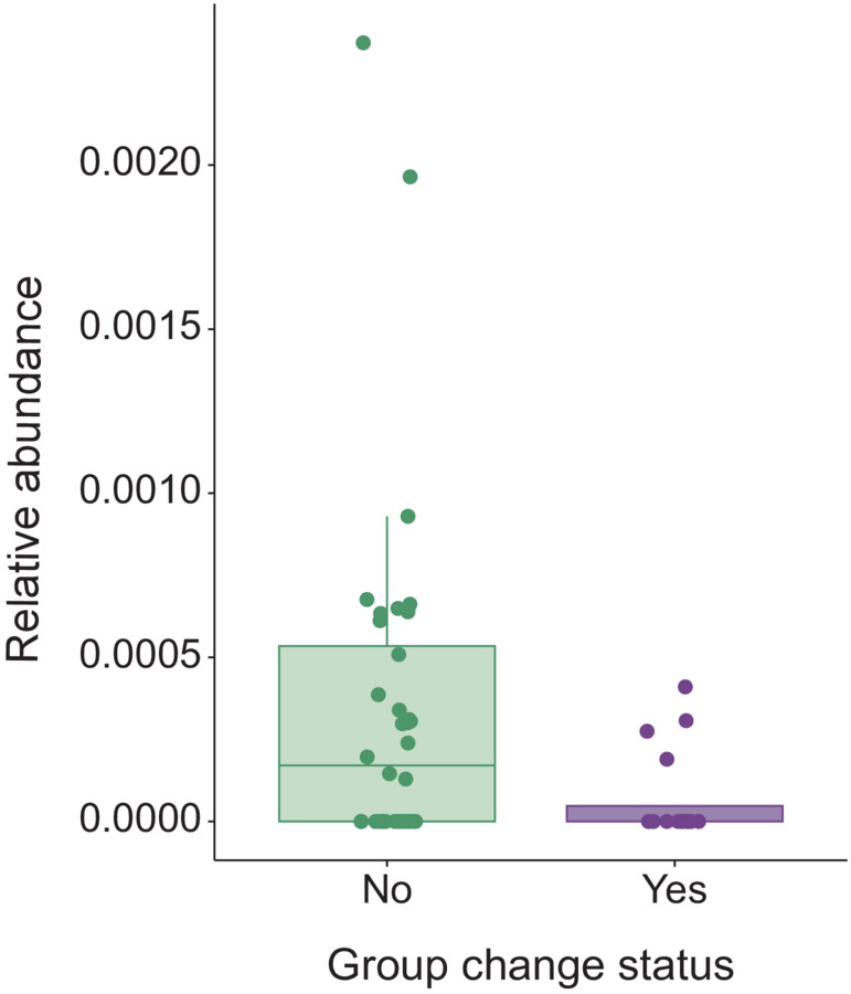 The disruption of animals' symbiotic bacterial communities (their microbiota) has been associated with myriad factors including changes to the diet, hormone levels, and various stressors. The maintenance of healthy bacterial communities may be especially challenging for social species as their microbiotas are also affected by group membership, social relationships, microbial transfer between individuals, and social stressors such as increased competition and rank maintenance. We investigated the effects of increased social instability, as determined by the number of group changes made by females, on the microbiota in free-living, feral horses (Equus caballus) on Shackleford Banks, a barrier island off the North Carolina coast. Females leaving their groups to join new ones had fecal microbial communities that were similarly diverse but compositionally different than those of females that did not change groups. Changing groups was also associated with the increased abundance of a several bacterial genera and families. These changes may be significant as horses are heavily dependent upon their microbial communities for nutrient absorption. Though we cannot identify the particular mechanism(s) driving these changes, to the best of our knowledge, ours is the first study to demonstrate an association between acute social perturbations and the microbiota in a free-ranging mammal.